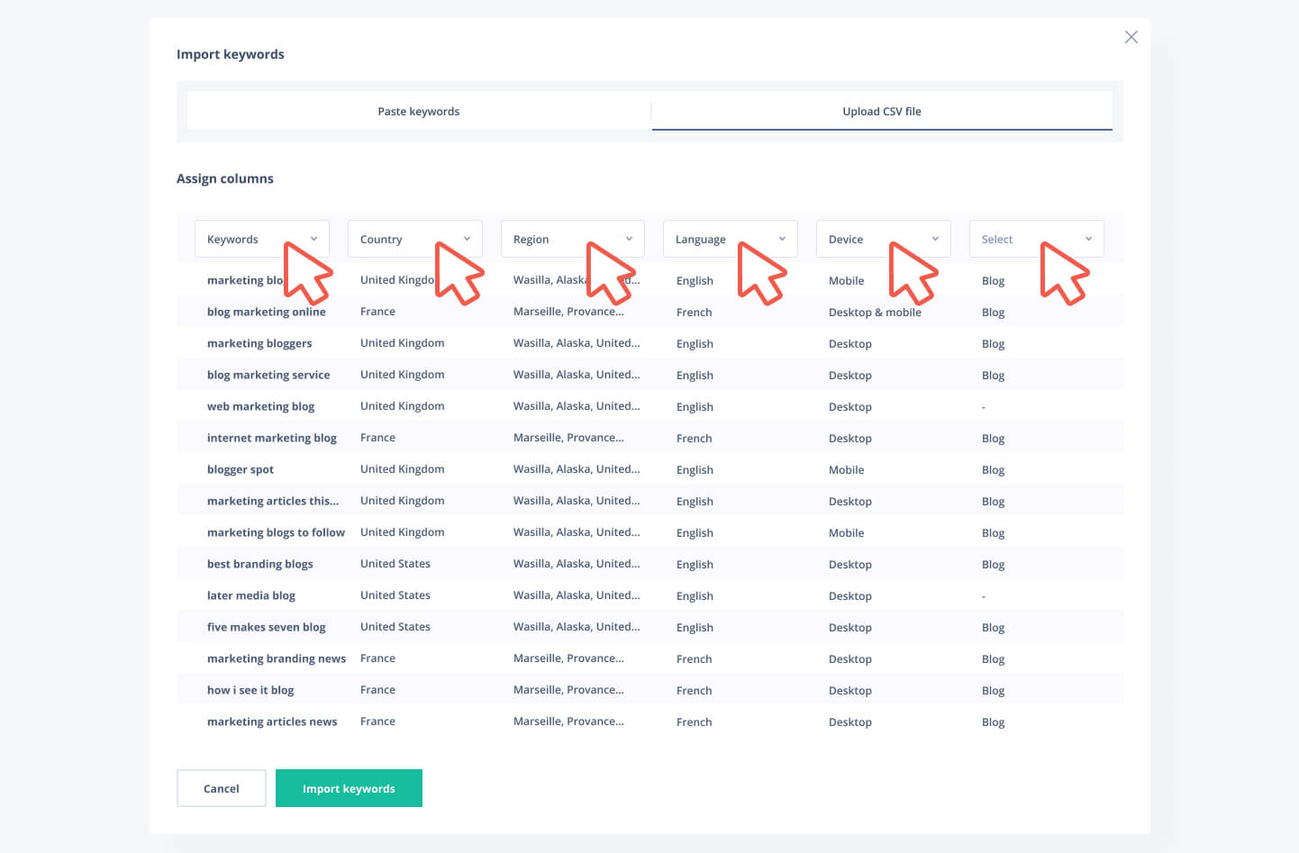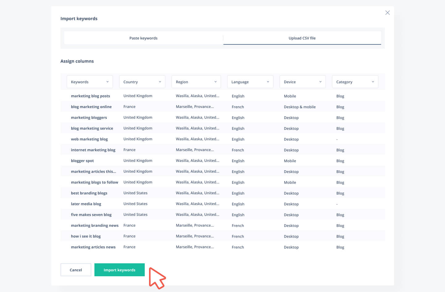Adding Keywords by Uploading Files