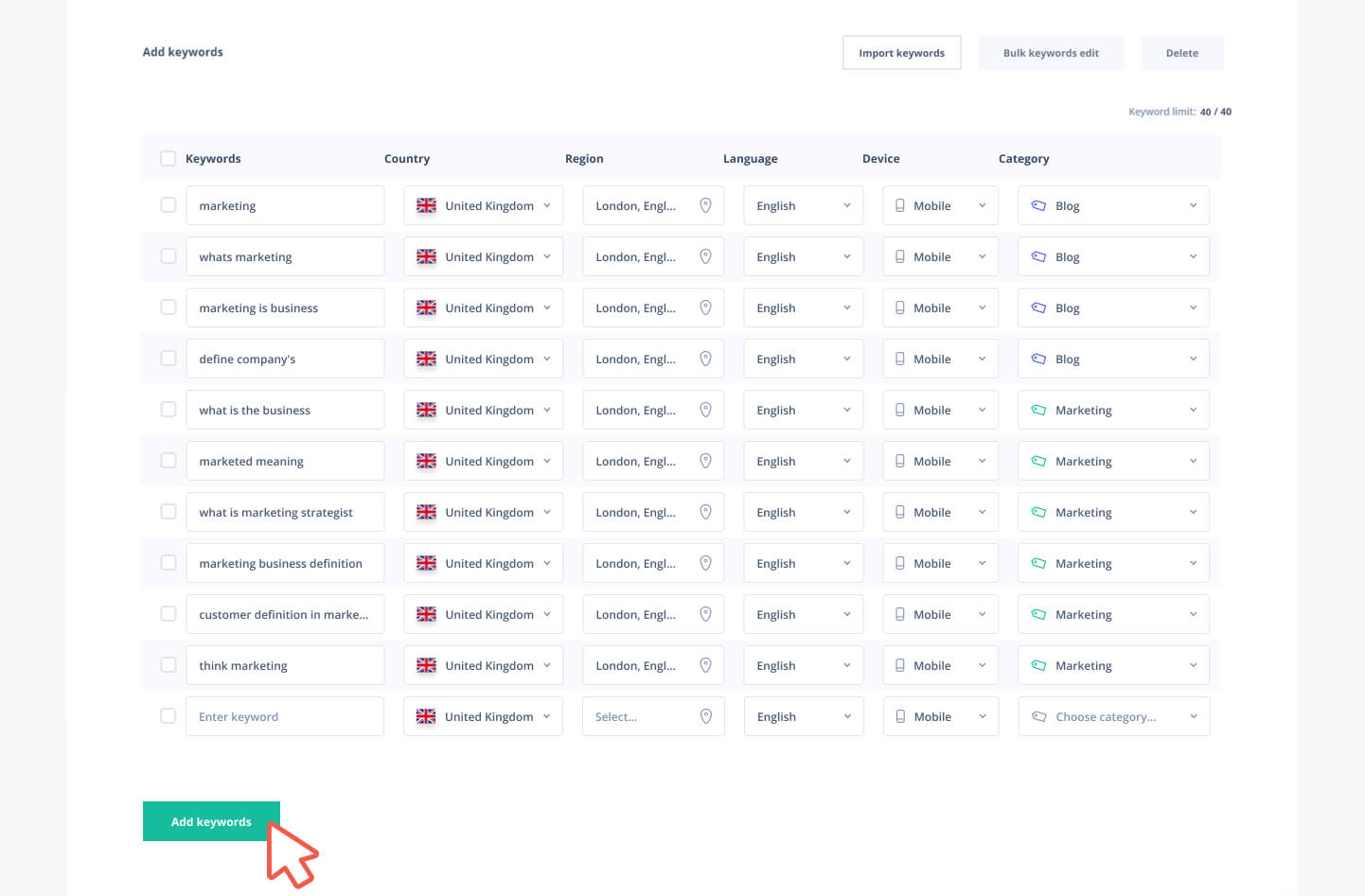 Manual Addition of Keywords