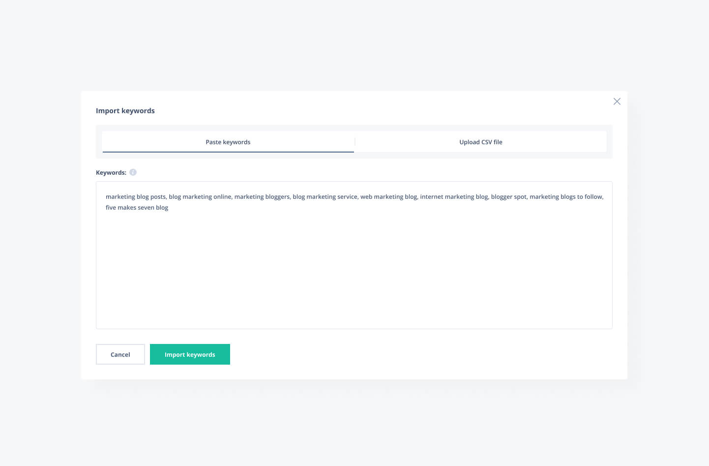 Adding Keywords by Pasting